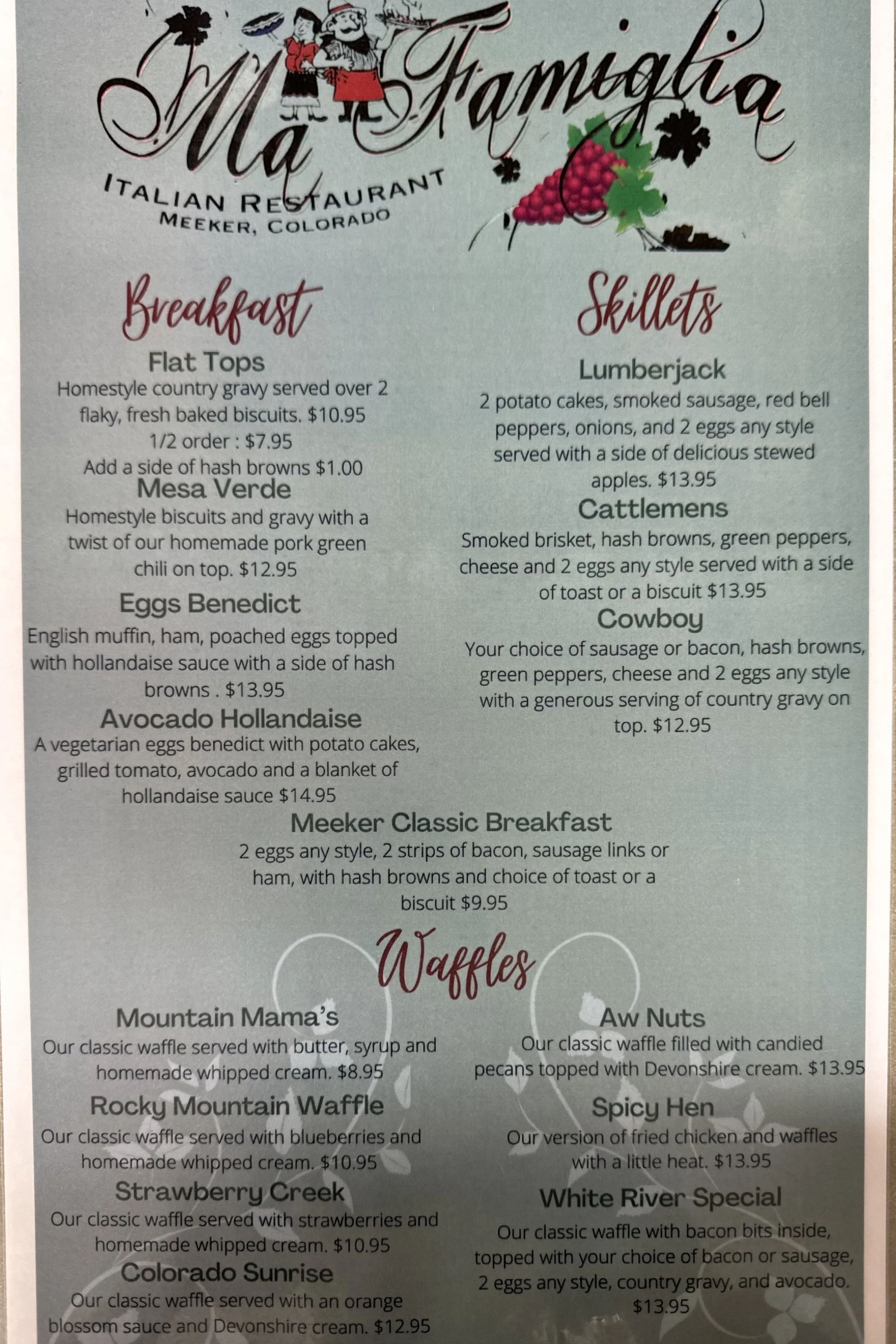 Smoked brisket, hash browns, green peppers, cheese & two eggs, any style; Served with a side of toast or a biscuit.